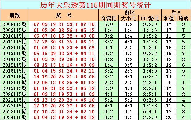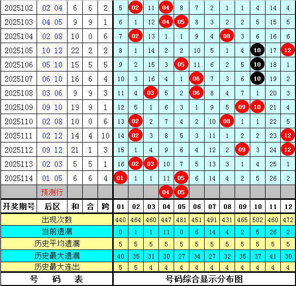 在历史同期奖号中,后区奖号跨度尾数大小比为13:4(定义:跨度1、2、3、10、11为小尾跨度,跨度4、5、6、7、8、9为大尾跨度),其中小尾跨度出现次数较低,本期注意小尾跨度回补,关注跨度1。